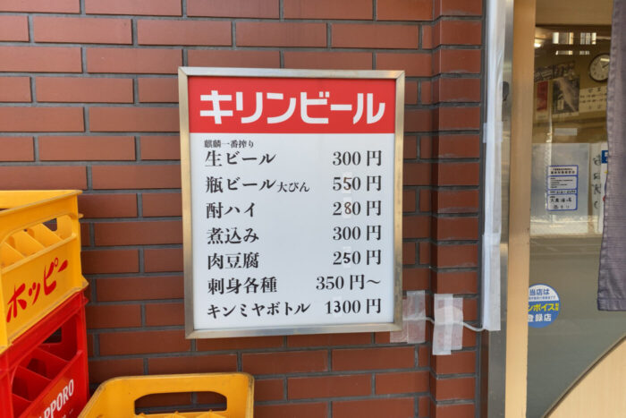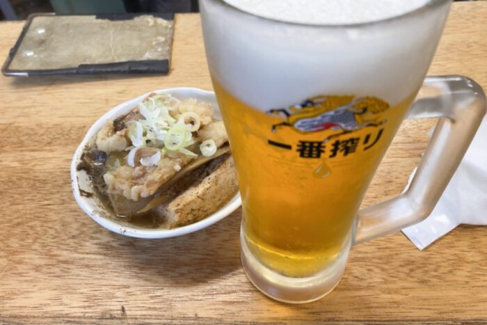 生ビールが300円、酎ハイ280円、肉豆腐250円。まさに「せんべろ」の聖地。