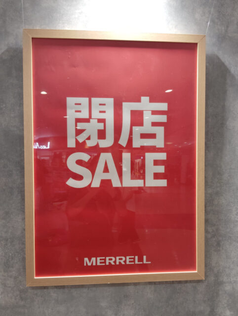 ららぽーとTOKYO-BAY北館2階、アウトドアシューズブランド「MERRELL」が閉店、閉店セールが開催中