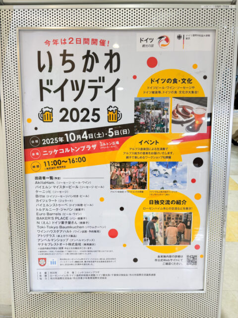 10/4(土)5(日)ニッケコルトンプラザにて「いちかわドイツデイ2025」が開催、ドイツビールにソーセージ、本場の味を楽しもう!
