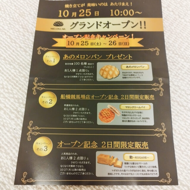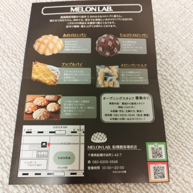 船橋市浜町に、メロンパン専門店「MELON LAB.船橋競馬場店」が10/25(土)オープンです。