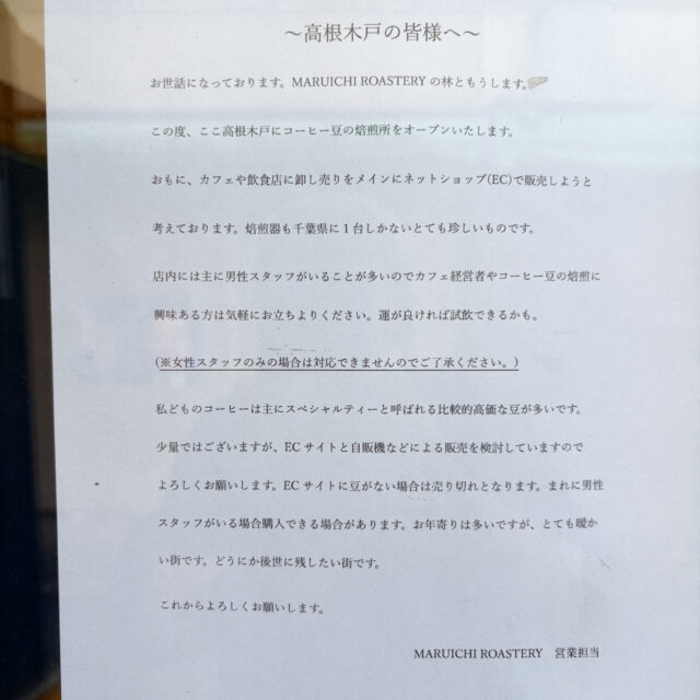 高根木戸駅近くにコーヒー焙煎所「MARUICHI ROASTERY」がオープン予定です。