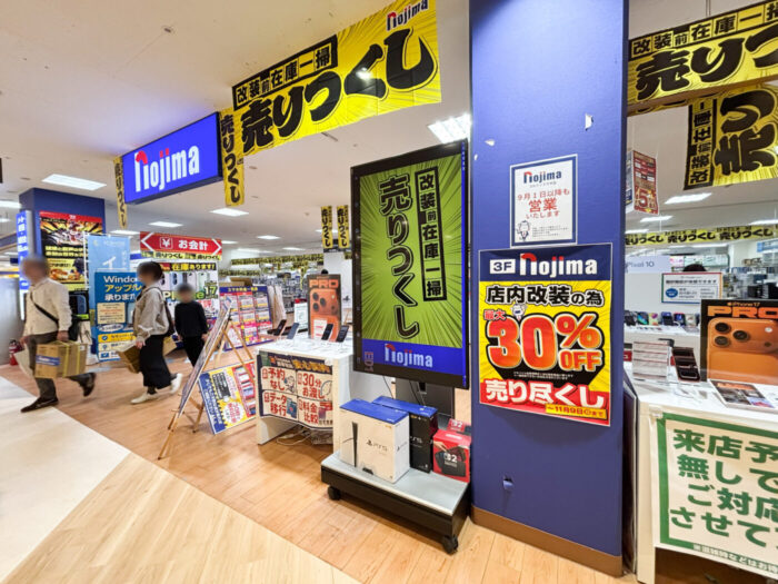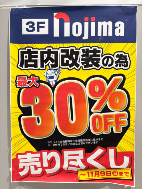 家電量販店「ノジマ コルトンプラザ店」が店内改装のため11/10(日)から一時閉店!売りつくしセールは11/9(木)まで!最大30%オフ