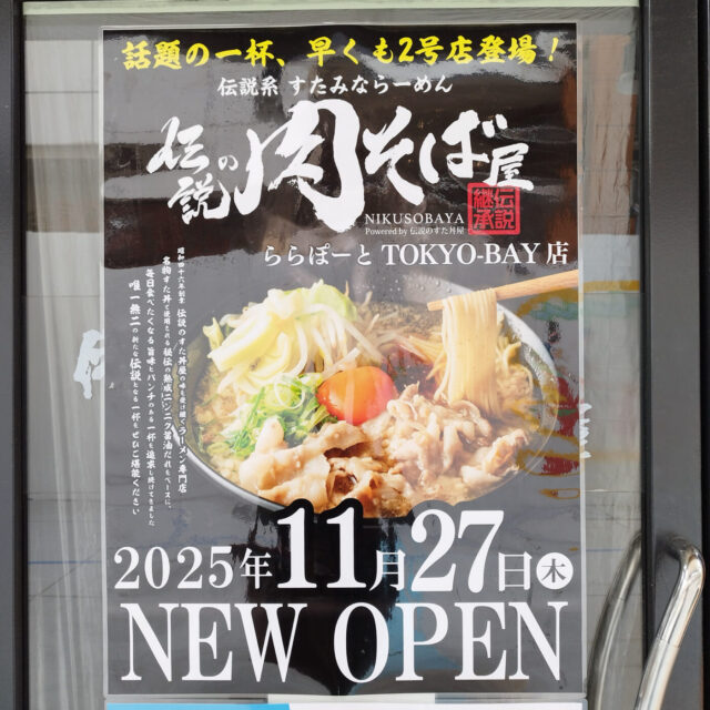 ららぽーとTOKYO‐BAY南館の「伝説のすた丼」跡地に「伝説の肉そば屋」が11/27(木)オープン予定