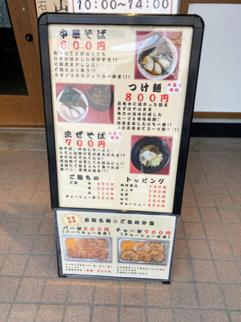 中華そばにつけ麺、まぜそばがお手頃価格で展開。