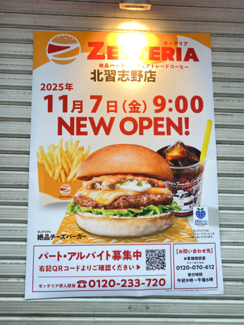 船橋市習志野台のロッテリア北習志野店が、10月28日から休業していましたが、11月7日(金)午前9時より「ゼッテリア北習志野店」としてリニューアルオープンします。