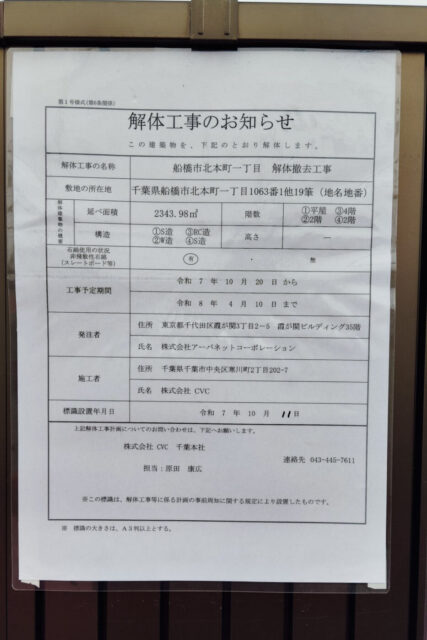 船橋市北本町1丁目で、大規模な建物の解体工事が進行しています。