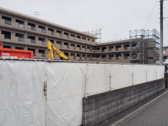 解体されているのは住友大阪セメント株式会社の社員寮として使用されていた建物で、令和7年10月20日から令和8年4月10日までの長期工事が予定されています。