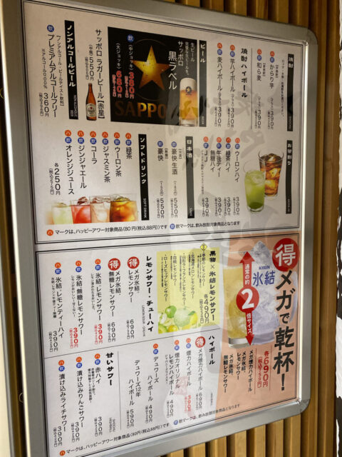注目すべきは、毎日18時まで実施される破格のハッピーアワーです。ハイボール、チューハイ、ソフトドリンクが1杯わずか80円(税抜88円)で楽しめます。