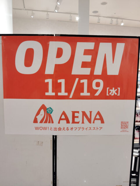 イオンモール船橋1階に「WOW!と出会えるオフプライスストア」として話題の「AENA(アエナ)」が11月19日にオープンします。