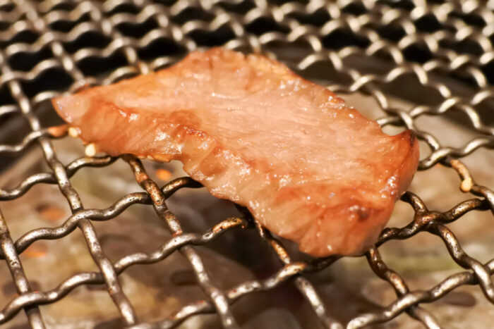 ジュージューと焼ける音と、蒸気が半端ありません。こちら、なんと石焼専用の焼き器があるそうで、そちらでチンチンになるまで熱しているのだそうです。