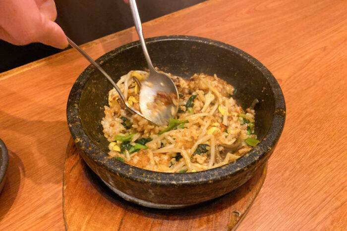 この日はお腹がペコペコだったので、思い切って石焼ビビンバも注文。1,100円。