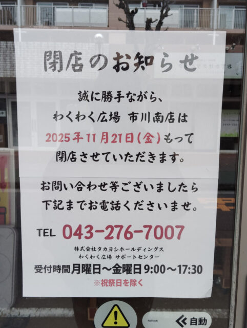 地域直売「わくわく広場 市川南店」が11/21(金)をもって閉店、市川駅近く