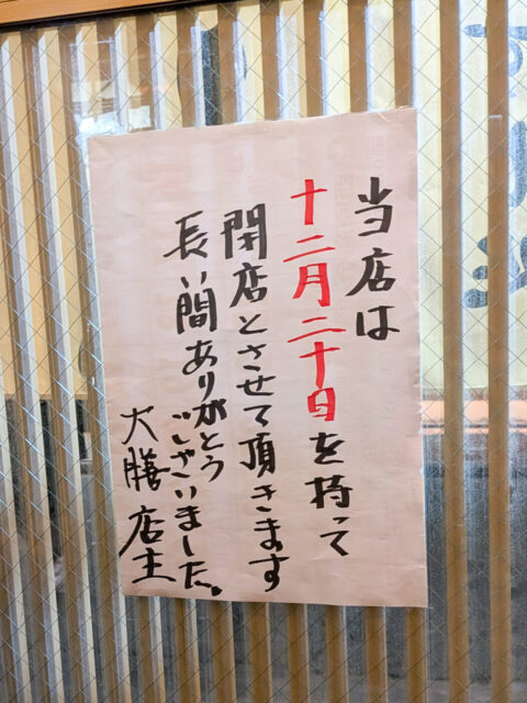 店頭には閉店を案内する張り紙が確認できています。