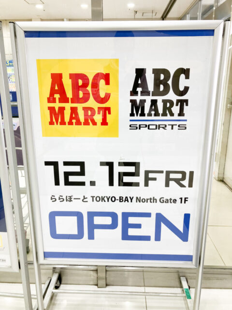 ららぽーとTOKYO-BAY North Gate1階に、靴専門店大手の「ABC-MART」と「ABC-MART SPORTS」が12月12日(金)にオープンします。