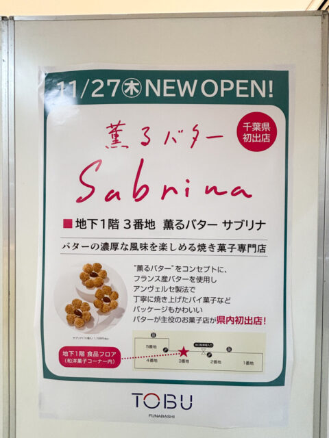 関連リンク:東武百貨店船橋店に千葉県初出店のバター菓子専門店「サブリナ」が11月下旬オープン予定!
