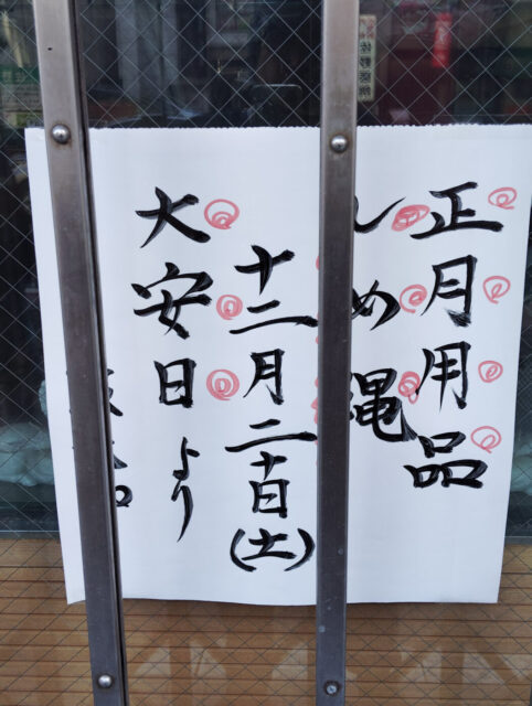船橋市本町4丁目の「和泉屋」さん、正月用品・しめ縄の販売を12/20(土)から開始される事が分かりました。