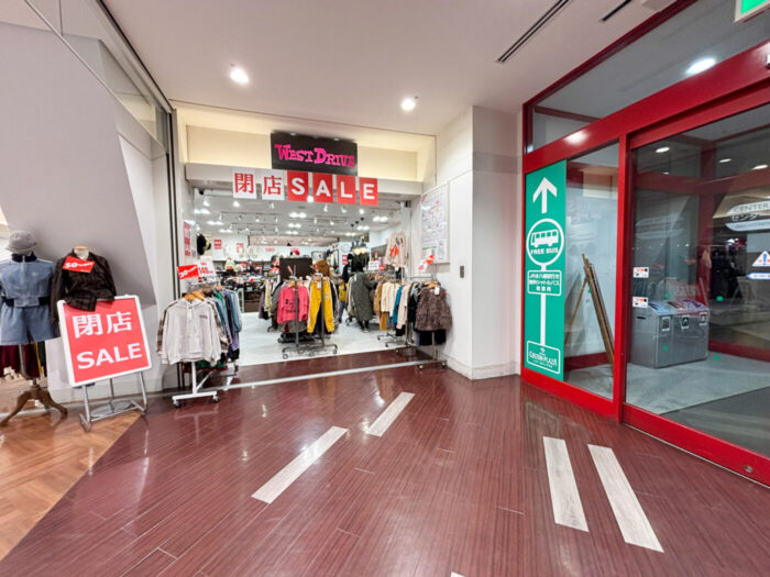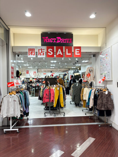 ニッケコルトンプラザ2階のアパレルショップ「WEST DRIVE(ウエストドライブ)」が1/25(日)をもって閉店、閉店セールが開催中