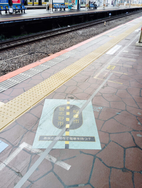 あなたは何市で電車を待つ?津田沼駅1・2番線ホーム上の市境界線【船橋百景】