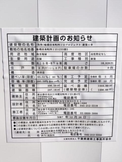 京成船橋駅前の一等地で、以前「ファミリーマート 京成船橋駅前店」があった場所に新たな商業ビルの建設計画が進んでいます。