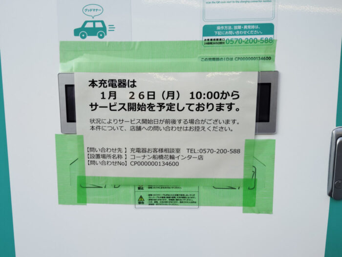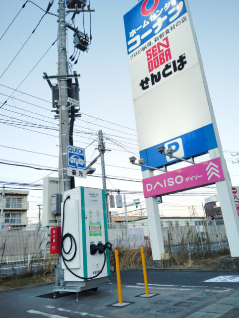 船橋市宮本9丁目のコーナン船橋花輪インター店駐車場内に電気自動車(EV)用急速充電スタンドが稼働を開始しました。