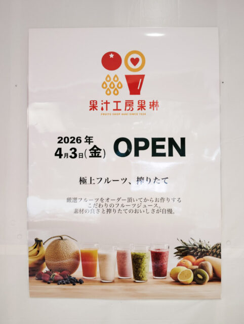 ニッケコルトンプラザ2階に「果汁工房果琳」が4/3(金)オープン、極上フルーツの搾りたてジュースをお届け
