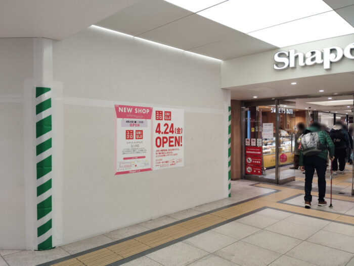 シャポー本八幡に「ユニクロ」が4/24(金)オープン予定、本八幡駅改札口近く旧みどりの窓口跡地に登場