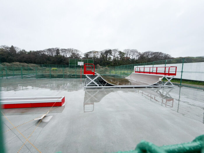 コンクリート舗装で整備された専用エリアには「ミニランプ」「カーブボックス」「バンクtoバンク」の3種類のセクションを配置。初心者から上級者まで技術レベルに応じて利用でき、特にバンクtoバンクは初心者向けに設計されています。
