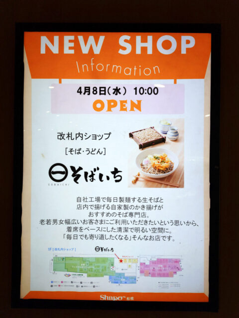 シャポー船橋に蕎麦店「そばいち」が4/8(水)オープン、「いろり庵きらく」跡地でブランド変更、本格生そばと自家製天ぷらが自慢