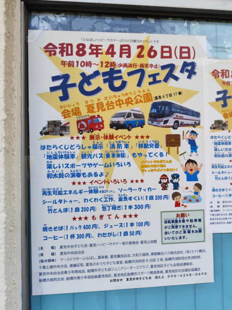 4/26(日)夏見台中央公園にて「子どもフェスタ」が開催されます。